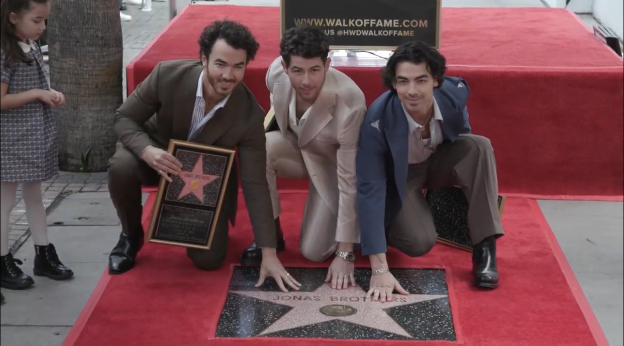 El trío de hermanos conformado por Kevin, Joe y Nick Jonas fueron honrados en el emblemático Paseo de la Fama de Hollywood, Los Ángeles, tras recibir la estrella por su destacada trayectoria.