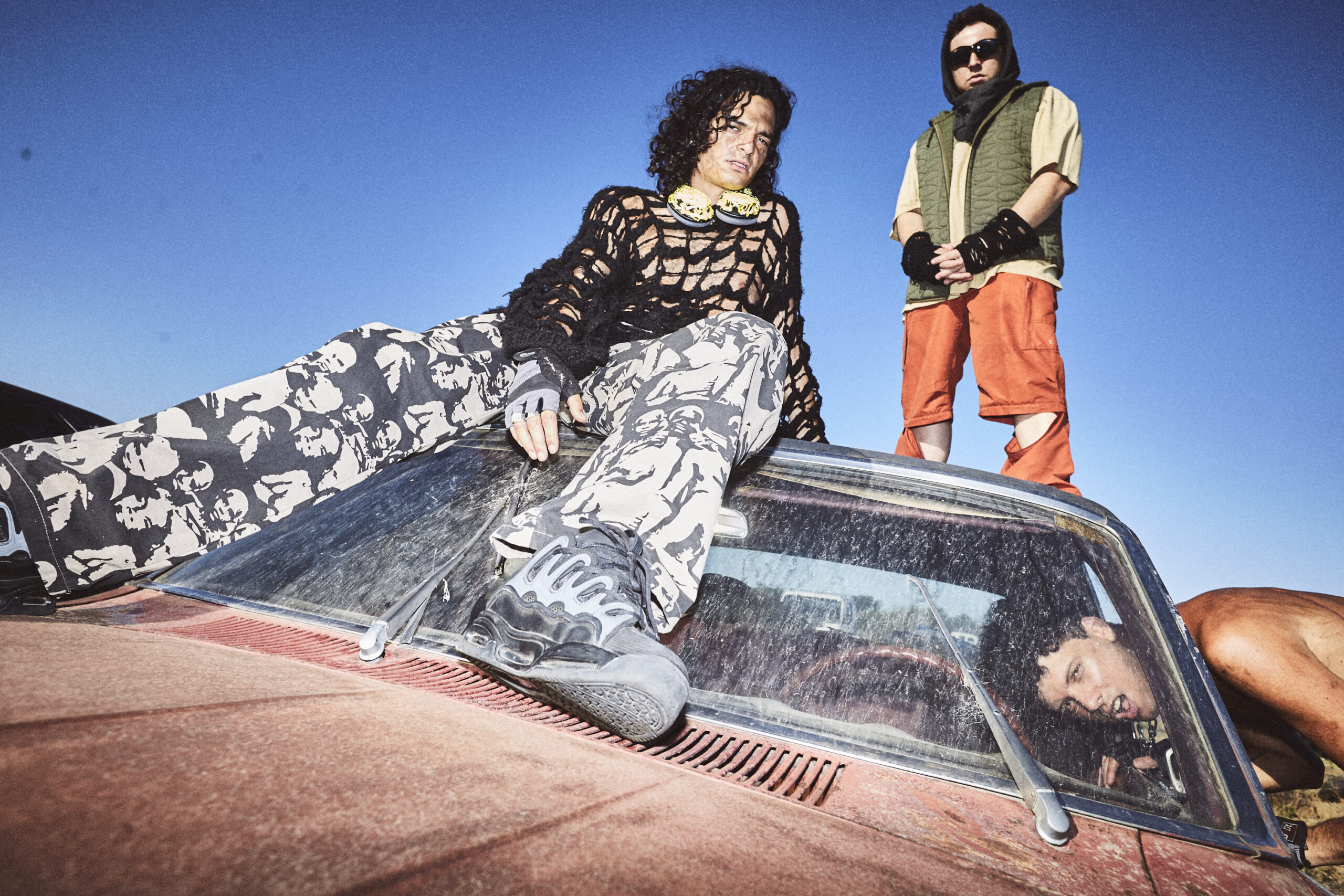 “No dejes tus pasos, todo acabará. No bajes los brazos, todo continuará”, reza el estribillo de “Las Flores Sangran”, cifrando el clima entero de la nueva canción de Usted Señalemelo, que se plasma con lucidez en el videoclip que lo acompaña, dirigido por Michel Hamonet. En un panorama de ruinas, una suerte de desarmadero de autos tomado por un grupo de amigos, lo nuevo empuja por nacer a fuerza de astucia y oportunidad: desde viejas autopartes a las que les encuentran nuevos usos hasta el hallazgo de una planta improbable que crece al interior de los restos oxidados de un viejo colectivo. La canción nueva del trío contempla esos inicios que se dan sobreimprimiéndose sobre lo viejo, en los lugares y momentos menos pensados.